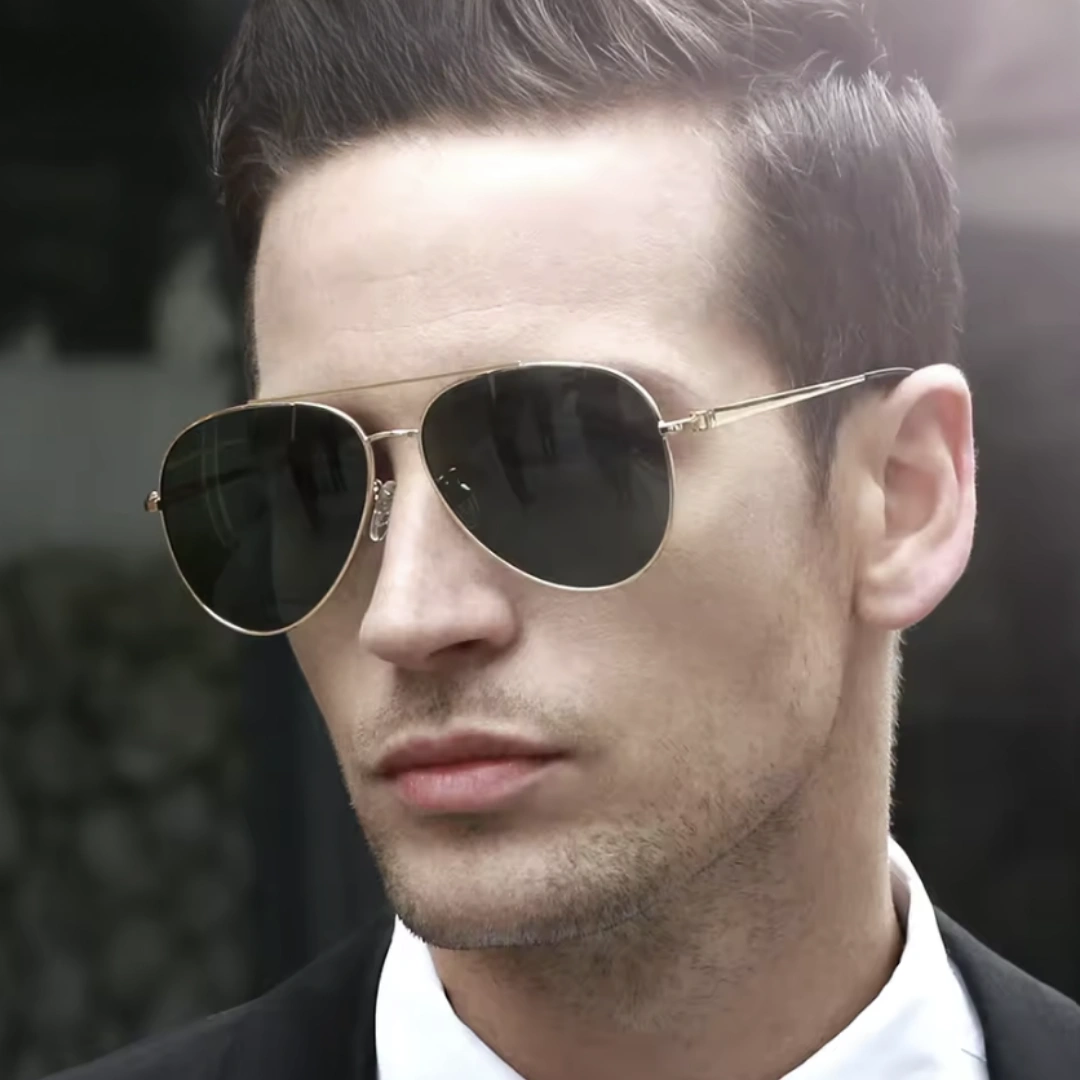 A classic pilot-style men’s sunglasses designed for strong sunlight and sandy outdoor environments. Built with a durable stainless-steel frame and premium TAC polarized mirror lenses offering UV400 protection and anti-reflective clarity. Perfect for outdoor activities, travel, driving, and daily wear.